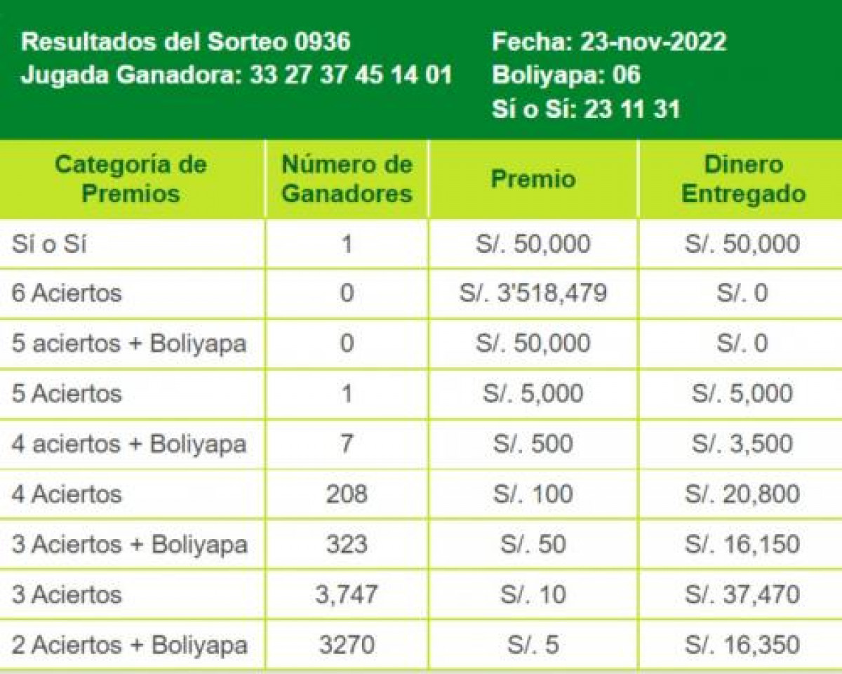 Tercera bolilla: 27, hay 1 ganador en Chimbote
