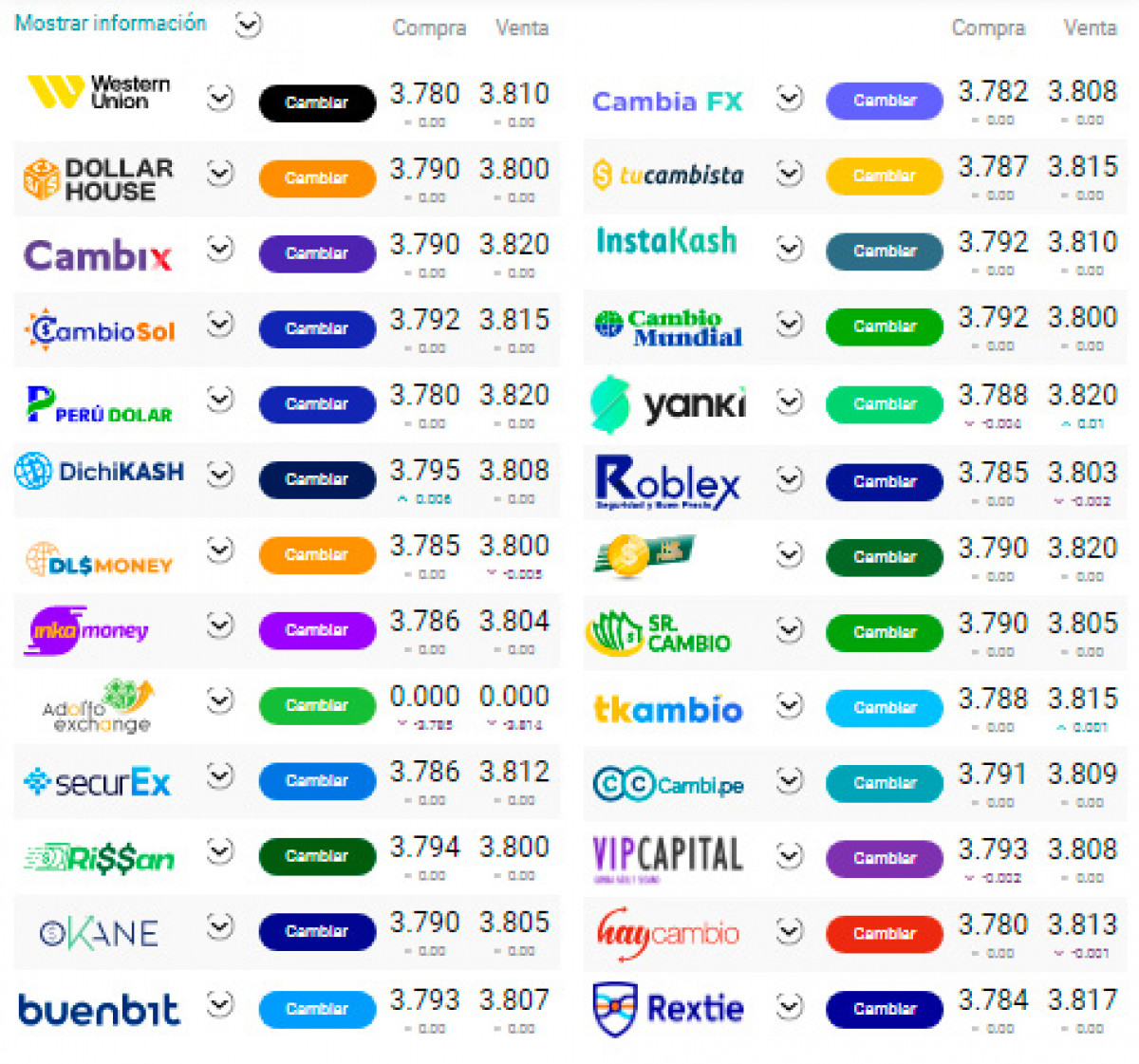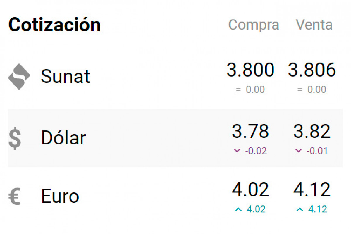 De acuerdo al portal cuantoestaeldolar.pe, el tipo de cambio se cotiza en: