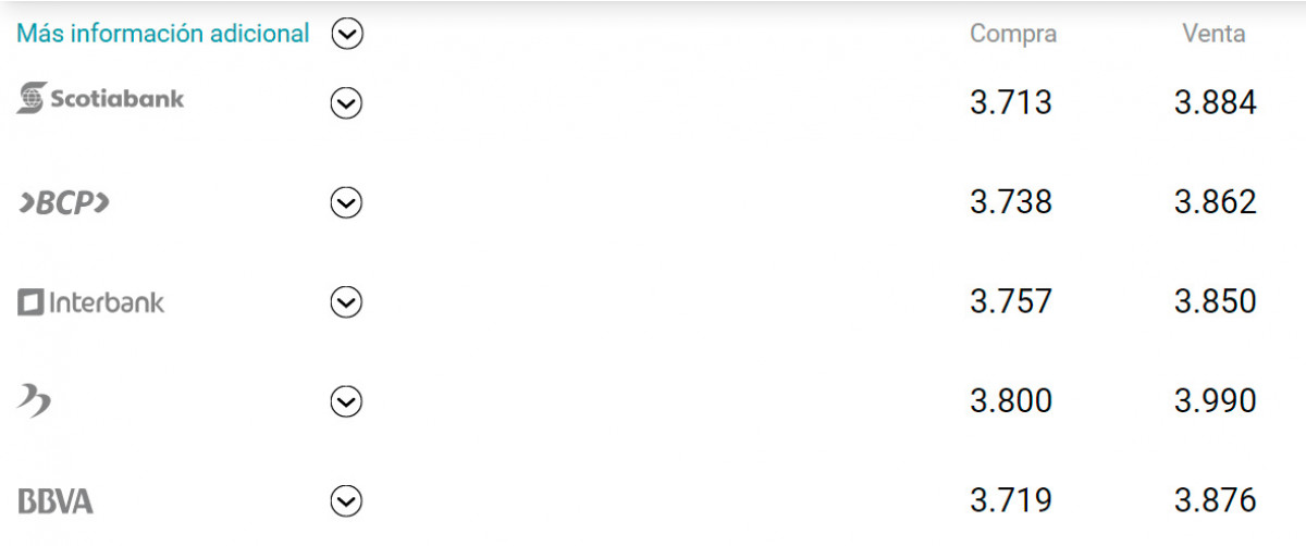 De acuerdo al portal cuantoestaeldolar.pe, el tipo de cambio en los bancos se cotiza en: