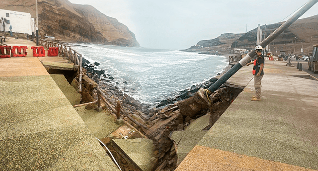 Según detalló, el agua del mar se habría ido filtrando con el tiempo hasta debilitar el muro. Esto provocó que una parte del malecón cediera y que un poste —que servía de soporte para cables eléctricos y de internet— terminara inclinado e inutilizable.