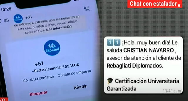 Una joven enfermera contó que en su búsqueda de trabajo, fue contactada para un puesto en EsSalud con un salario de S/ 3.800. Le indicaron inscribirse en dos cursos —Seguridad y Salud en el Trabajo, y Salud Ocupacional— supuestamente dictados por un consorcio vinculado al hospital Edgardo Rebagliati. Pagó S/ 360 por ambos, pero descubrió que ni los programas ni los certificados existían.