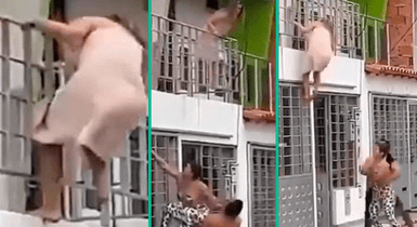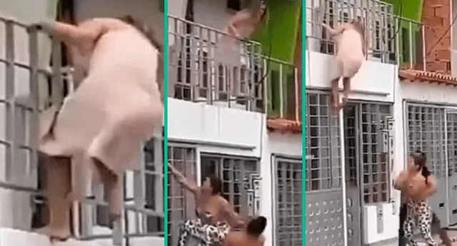 ¡Dramático escape! Amante semidesnuda salta de un segundo piso para huir de la furia de la esposa engañada