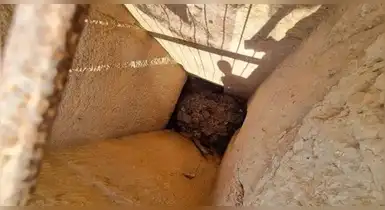 El tercer pozo, situado en el lado oriental de la pirámide de Keops, destaca por su diseño más complejo. Su entrada reforzada con bloques de piedra conduce a una cavidad que, según los expertos, habría sido usada para elevar o guiar objetos desde el subsuelo, posiblemente con fines rituales o ceremoniales.
