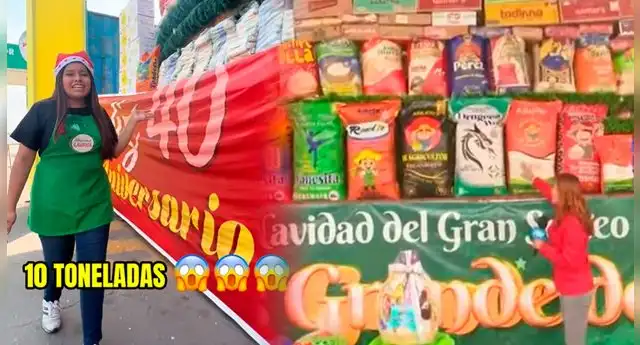 Esta enorme canasta, de aproximadamente 7 toneladas, reúne productos esenciales de la canasta básica familiar, como sacos de arroz, panetones, conservas de atún y otros alimentos de primera necesidad. Según la organización del mercado, el volumen del premio es tan grande que no solo permite abastecer un hogar por varios meses, sino que incluso podría servir como capital inicial para emprender un pequeño negocio, como una bodega o punto de venta barrial.