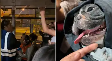 Según las imágenes compartidas en la red social, el perro permanecía tranquilo y no generaba molestias dentro de la unidad. Sin embargo, la situación cambió cuando una pasajera, que llevaba a un bebé en brazos, expresó su incomodidad y cuestionó la presencia del animal en el transporte público.