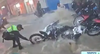 Tarapoto vivió horas de caos tras una lluvia de intensidad inusual que convirtió calles y plazas en verdaderos ríos. El agua cayó con tal fuerza que, como se ve en imágenes difundidas en redes sociales, arrastró motocicletas, paralizó el tránsito y obligó a vecinos y comerciantes a ponerse a salvo.