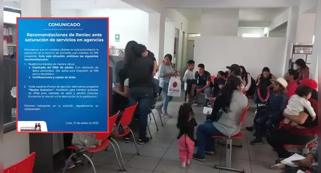 "Informamos que en nuestras oficinas se está presentando la saturación en el servicio de biometría para trámites de DNI presencial. Ante esta situación, emitimos las siguientes recomendaciones", se lee en el comunicado.