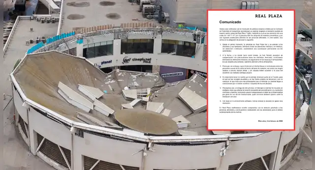 "Preocupa, sin embargo, que el Indecopi La Libertad llegue a conclusiones sobre las presuntas causas de la caída del techo del patio de comidas, sin contar con ningún análisis o estudio técnico oficial, y sin ni siquiera haber accedido a la zona del accidente", resalta Real Plaza.