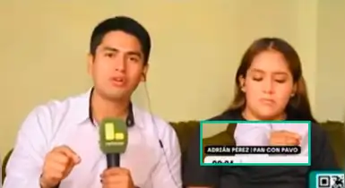 No obstante, en el cintillo de identificación apareció el texto: “ADRIÁN PÉREZ | PAN CON PAVO”, un rótulo que no coincidía con la noticia ni con la función del comunicador dentro del espacio televisivo.