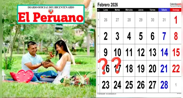 Después del Día de San Valentín, se generaron dudas sobre si el 16 y 17 de febrero serían feriados en Perú. El Diario Oficial El Peruano aclaró la incertidumbre.