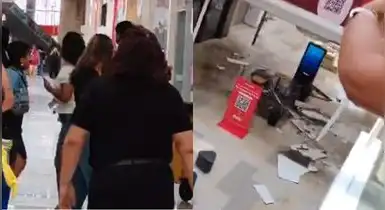 En los videos a los que tuvo acceso nuestro medio, se observa cómo las personas que presenciaron la caída del techo se retiran del lugar visiblemente temerosas, mientras los trabajadores procedían a limpiar la filtración de agua.