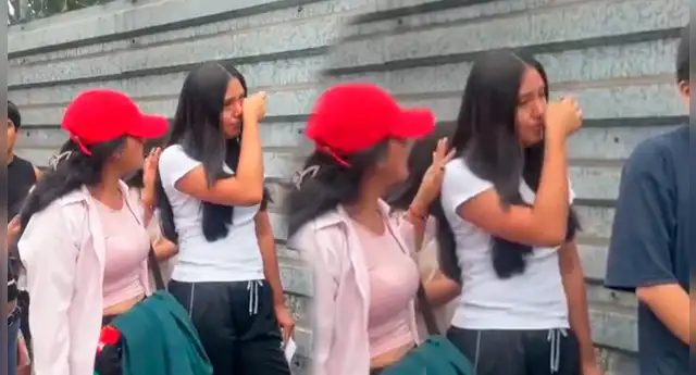 Mientras los postulantes se preparaban para este importante momento académico, la joven, que se encontraba en la cola junto a otros estudiantes, se emocionó y rompió en llanto frente a las personas que se encontraban en el lugar.