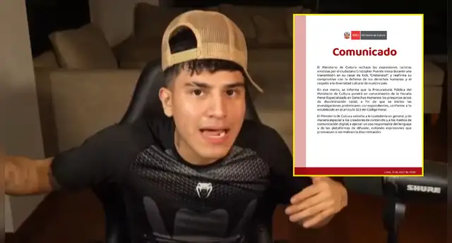 El Ministerio de Cultura ha presentado una denuncia ante la Fiscalía Penal Especializada en Derechos Humanos por comentarios racistas del streamer Cristopher Puente, "Cristorata7".