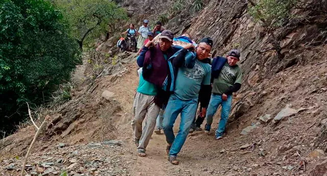 La gestante tuvo que ser llevada en hombros por los médicos que llegaron hasta el caserío de la Unión de Andurco para poder ayudarla, ya que su estado de salud era reservado.