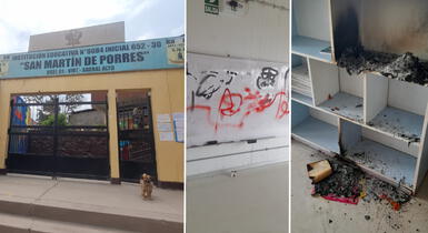 Un grupo de vándalos ingresaron al colegio 6084"San Martín de Porres, en Villa María de Triunfo, quemando parte de las estructuras para luego extraer todo lo que encuentren a su paso. Ello ha generado daños irreparables para los estudiantes que están próximos a finalizar el año con sus actividades navideñas.