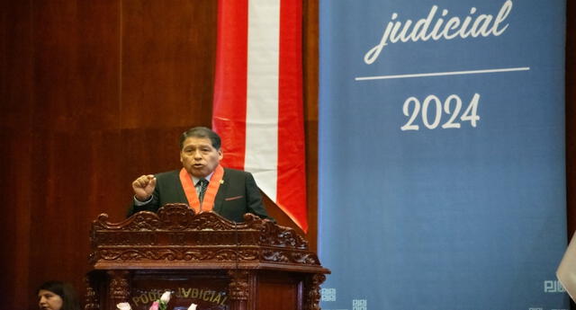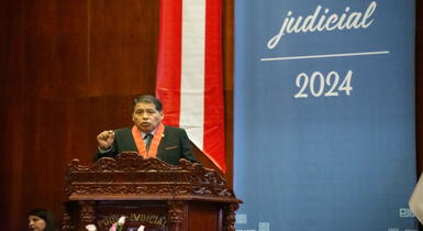 Sahuanay Calsín declaró inaugurado el Año Judicial 2024 en una ceremonia pública a la que asistieron jueces, juezas, la fiscal adjunta superior Elsie Garavito Chang, coordinadora del Equipo Especial de Fiscales para el caso Lava Jato, Francisco Vegas, de la Defensa Pública del Ministerio de Justicia, entre otras.