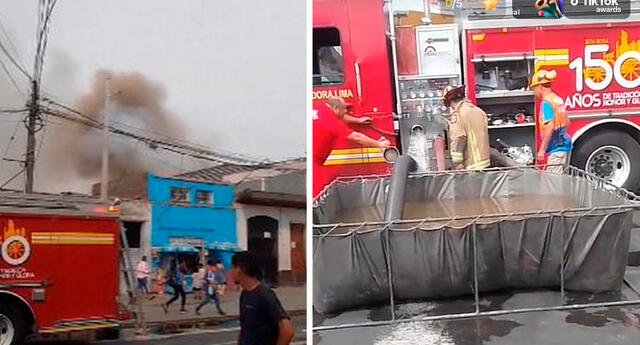 El incendio en una quinta del Rímac es atentido por más de 10 unidades de bomberos, quienes intentan apagar las llamas de fuego.