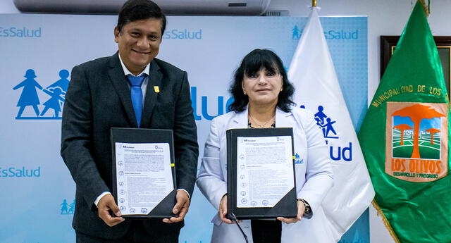 Con el objetivo de fortalecer y ampliar los servicios de atención primaria, la presidenta ejecutiva de EsSalud, Dra. María Elena Aguilar Del Águila, firmó un convenio de intercambio prestacional con el alcalde de la Municipalidad Distrital de Los Olivos, Luis Felipe Castillo Oliva que beneficiará a más de 177 mil asegurados de la Red Prestacional Sabogal.