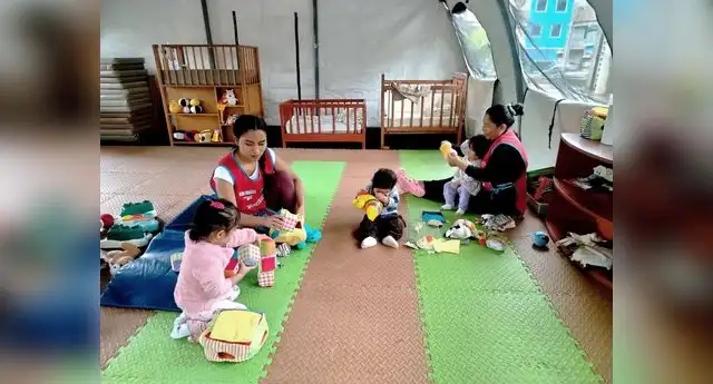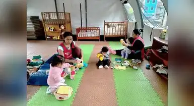 Una de las carpas está destinada a niños caminantes y exploradores (de 19 a 36 meses de edad) y cuenta con cuatro módulos a cargo de cuatro madres cuidadoras. La otra carpa fue destinada a bebés y gateadores (de 6 a 18 meses) con cuatro módulos para la atención de los menores.