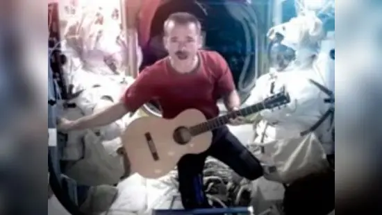 En el video se le observa tocando una guitarra mientras canta el tema de Bowie “Space Oddity” y se pasea por la EEI, y desde las ventanas se puede ver las impresionantes imágenes de la Tierra.
