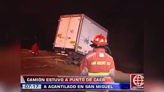 En horas de la madrugada un pequeño camión fue rescatado de caer a un acantilado en la alameda Bertoloto, en el distrito de San Miguel.