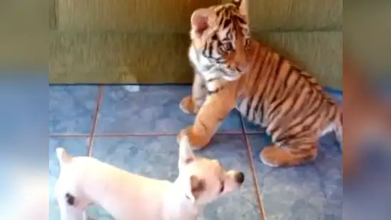Videos virales hay muchos pero de aquellos que te roban el corazón hay pocos. Ese es el caso de un tigre bebé y un perrito que se han convertido en los mejores amigos tras haber sido adoptados por una familia humana.Sus tiernos juegos entre los muebles de la sala e intercambios de rugido-aullidos quedaron captados en un video que fue subido al portal de YouTube donde, rápidamente, se ha convertido en un viral que, a pesar de su ternura, también ha levantado polémica.Y es que el minino es nada más y nada menos que un tigre de bengala, el cual es, como ya se conoce, un animal salvaje cuyo hábitat natural son las agrestes zonas de África, principalmente.Sin embargo, según ha indicado la cadena CNN en una investigación, algunas zonas de Estados Unidos, entre las que se encuentran incluídas Arizona, Misisipi, Virginia Occidental y Wyoming, las personas tienen la posibilidad de obtener un permiso especial con el cual están aptos para adoptar a un tigre como mascota.Ahora, lo único que queda esperar es que esta tierna amistad dure muchos años y enseña, a los hermanos mayores.
