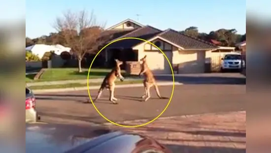 Según usuarios de YouTube, los canguros pelean en fechas de apareamiento para saber qué macho dominará en esta temporada. Al finalizar el video se ve a los animales perdiéndose en una calle.