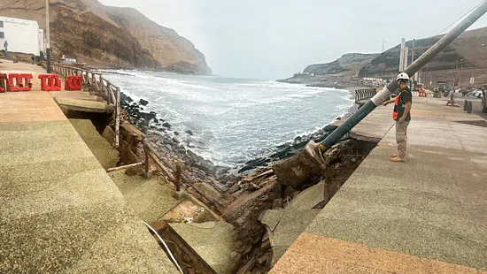 Según detalló, el agua del mar se habría ido filtrando con el tiempo hasta debilitar el muro. Esto provocó que una parte del malecón cediera y que un poste —que servía de soporte para cables eléctricos y de internet— terminara inclinado e inutilizable.