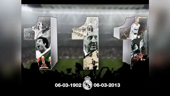 Real Madrid, uno de los equipos más grandes en la historia del fútbol mundial, cumple hoy 111 años de triunfos, derrotas, campeonatos y estrellas que lo han convertido en uno de los máximos referentes del balompié.El Real Madrid nació el 6 de marzo de 1902 y, bajo la presidencia de Santiago Bernabéu, inició una era de gran esplendor. Jugadores de la talla de di Stefano, Puskas o Gento dieron al club las cinco Copas de Europa consecutivas a fines de los 50.Madrid vivió una segunda edad de oro a fines de los 90 con "los galácticos": Luis Figo, Zinedine Zidane, Ronaldo, Roberto Carlos, Raúl o Iker Casillas. Tres nuevas Copas de Europa y una Copa Toyota Intercontinental desataron la locura entre sus seguidores.También recordada es la "Quinta del Buitre", formada por Butragueño, Míchel, Pardeza, Martín Vázquez y Sanchís. Otros nombre históricos son los de Hugo Sánchez, Luis Molowny, Bernd Schuster, Jorge Valdano e Iván Zamorano, entre otros.Junto a su eterno rival, el FC Barcelona, Real Madrid pone adisposición de la afición partidos de infarto. A nivel local (Comunidad de Madrid), está el Atlético de Madrid.El equipo merengue adelantó ayer las celebraciones con la victoria en Old Trafford ante Manchester United de la mano de una de sus máximas figuras, el portugués Cristiano Ronaldo, vistiendo de verde y clasificándose a Cuartos de Final de la Champions League.Real Madrid busca su décima Copa de Europa, en el que son los máximos ganadores con nueve títulos (1956, 1957, 1958, 1959, 1960, 1966, 1998, 2000 y 2002). A nivel local, es el rey de la Liga española (32 coronas).