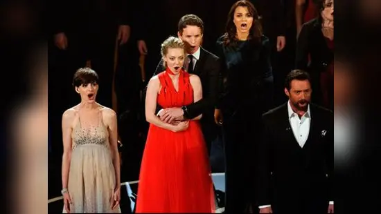 Y finalmente, el reparto de de “Los Miserables”. Anne Hathaway, quien ganó su primer Oscar a Mejor actriz de reparto, Hugh Jackman, Rossel Crowe, Amanda Seyfried y otros actores del elenco subieron al escenario para interpretar una de las canciones de la película.