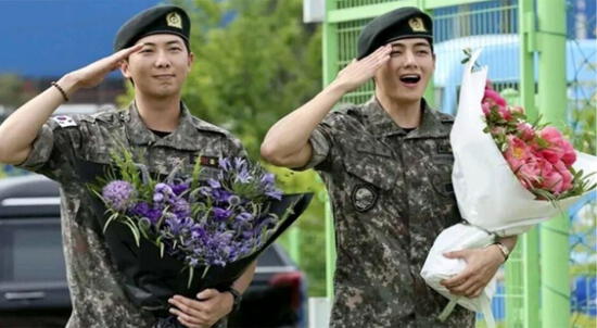 ¡La escena más tierna! Los cantantes Jungkook y Jimin de BTS terminaron los 18 meses de servicio militar obligatorio de Corea del Sur en la Quinta División de Infantería en Yeoncheon. Ellos no esperaron que a su salida de la base militar, miles de fans que viajaron de todas partes los estarían esperando para verlos retirarse con mucha emoción. Los artistas coreanos no ocultaron su sorpresa, recibieron flores y al final hicieron un saludo militar entre los gritos de fans.