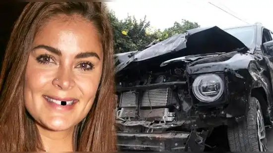 Laura Spoya se habría quedado sin un diente tras chocar su camioneta contra una pared. | Composición El Popular | Difusión