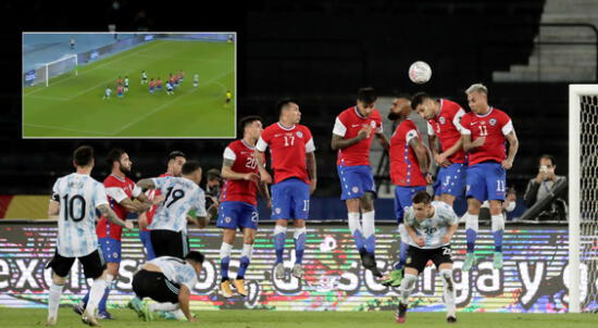 De la mano de Lionel Messi, Argentina abrió el marcador pese a la gran barrera chilena en el tiro libre. Golazo es candidato al mejor del torneo.