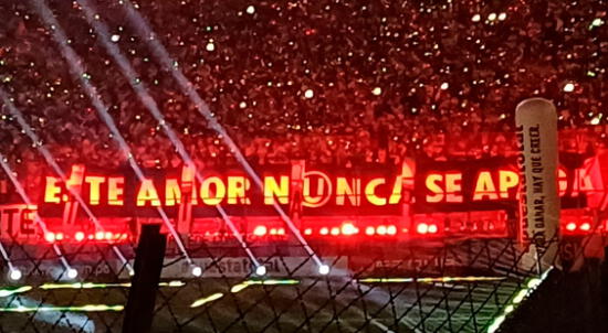Los jugadores de Universitario de Deportes fueron presentados en un Estadio Monumental lleno. La frase estuvo colocada en la tribuna norte del coloso.