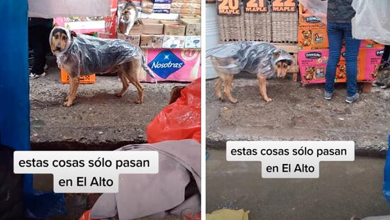 Joven coloca una bolsa a su perrito para protegerlo de la lluvia y curiosa escena se vuelve viral [VIDEO]