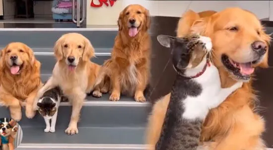 Gatito es el engreído de tres perros y así lo demuestran a diario