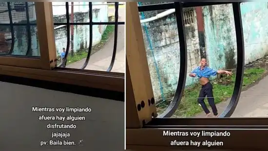 Joven pone samba para limpiar su casa y transeúnte aprovecha la música para bailar [VIDEO]
