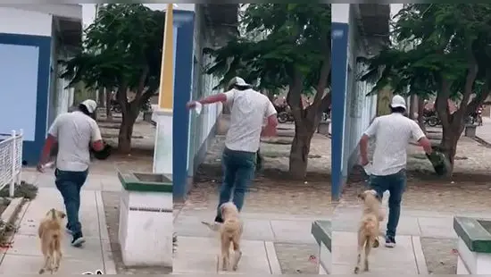Peculiar escena ha generado diversas reacciones en las redes sociales por la forma en cómo el perro acompaña al joven por una calle. Video subido a TikTok es una sensación.