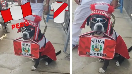 Perrito se disfrazó de hincha peruano para celebrar que Perú va al repechaje y escena es viral en TikTok