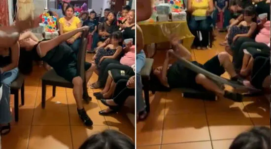 En medio de una fiesta, la mujer quiso ser el alma del evento y no calculó bien la resistencia de una silla en la que se sentó y quedó destrozada.
