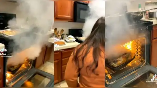 Casi genera un incendio. El pavo estaba horneándose, pero pasó por un incidente que no olvidará.