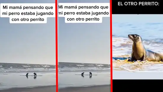 Perrito juega con foca bebé a orillas del mar y usuarios en TikTok se conmueven: "La naturaleza es linda"