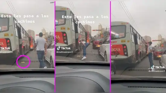 ¡Se la regresó! El joven se dio cuenta que el pasajero de un bus lanzó la cáscara a la pista y se la recogió para luego regresársela. La escena es viral en TikTok.