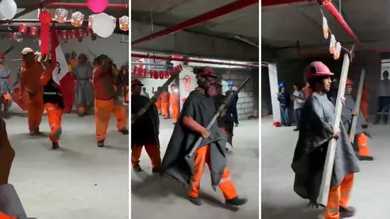 Trabajadores de construcción civil marchan de singular manera por Fiestas Patrias y son un éxito