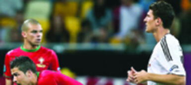 El delantero del Bayern Múnich Mario Gómez otorgó una sufrida victoria a Alemania ante la Portugal de Cristiano Ronaldo y sitúa a los alemanes como líderes del grupo B junto a Dinamarca, que venció por sorpresa a Holanda.