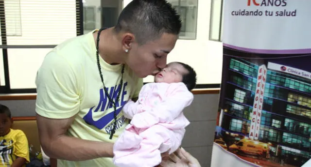 El delantero estuvo en el alumbramiento de su pareja en una clínica de Lima. Descartó que vaya a jugar por Alianza Lima.