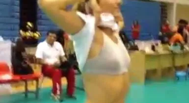 Al finalizar el encuentro en el Mundial de vóley de menores en Tailandia, la conocida “Doña Barbara” se subió el polo y mostró el brasier a vista y paciencia de todos los asistentes al estadio. Sin ningún miedo no dudo en cumplir su promesa, hecho que causó gracia.