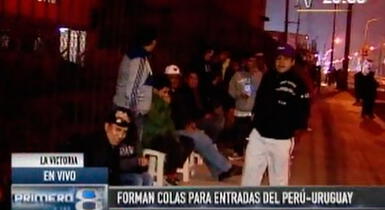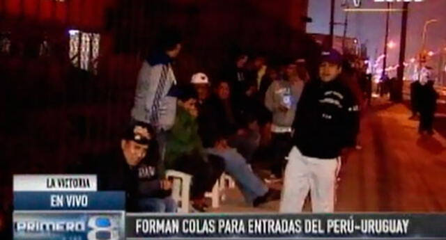 Decenas de personas, entre ellas muchos revendedores, salieron al ataque esta noche, dispuestos a pernoctar para obtener entradas del partido Perú-Uruguay, que se disputará el 6 de setiembre en el Estadio Nacional.