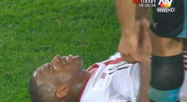 La Foquita se echó al mojado césped y lloró boca arriba. Pronto llegaron sus compañeros e incluso jugadores rivales para tratar de levantarle el ánimo.