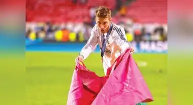 Sergio Ramos celebró la “Décima” Copa de Europa del Real Madrid a golpe de capote. El central andaluz, protagonista de la final con su tanto en el minuto 93, emuló a Raúl en el festejo mientras la afición blanca coreaba sus capotazos con “olés”.